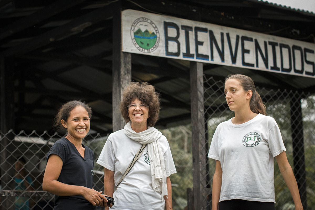 Un miembro de la Comunidad de Paz con voluntarias de PBI. Foto: Bianca Bauer