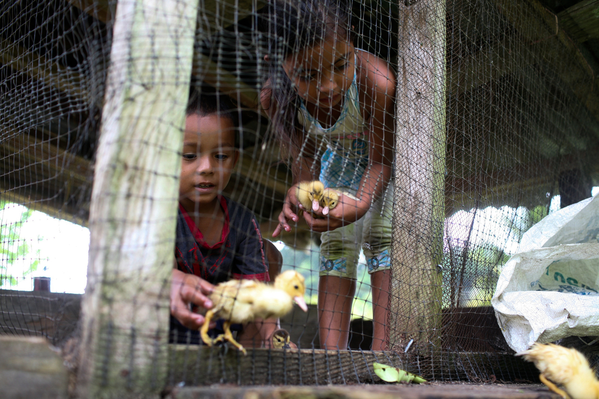 Esta visión alimenta el modelo de educación de la Comunidad de Paz, que es un modelo alternativo, centrado en valores de amor a la tierra, en la ética y la moral. La comunidad tiene su propio profesorado, quien combina la vivencia experiencial con la teoría para transferir sus conocimientos. La formación no solo está destinada a las y los jóvenes. En 2014, junto con otras veinte comunidades en resistencia civil de diferentes lugares del país, la Comunidad de Paz constituyó la Universidad Campesina, también llamada Universidad de la Resistencia. Este es un proyecto de aprendizaje e intercambio de conocimientos entre poblaciones rurales que han dicho no a la guerra que les rodea. La Universidad no tiene aulas: de manera ambulante se transfieren saberes y experiencias sobre la tierra y la agricultura, la producción orgánica y la protección del medio ambiente. Con la iniciativa, se pretende demostrar que la resistencia es un asunto de la vida cotidiana19.